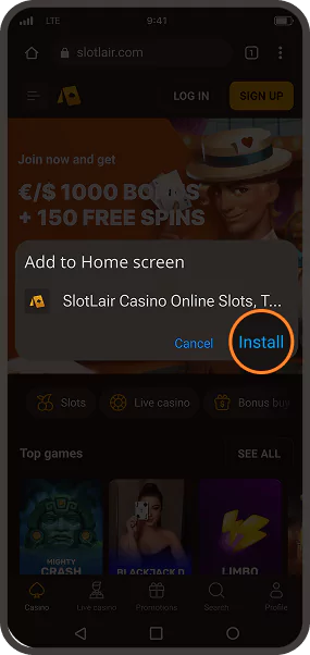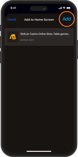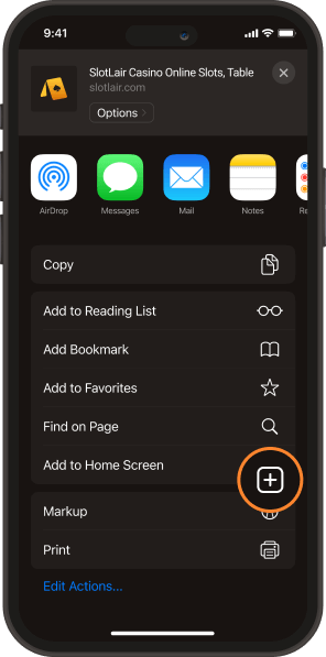 Open slotlair.com with Safari, tap “Share” on the bottom navigation panel.